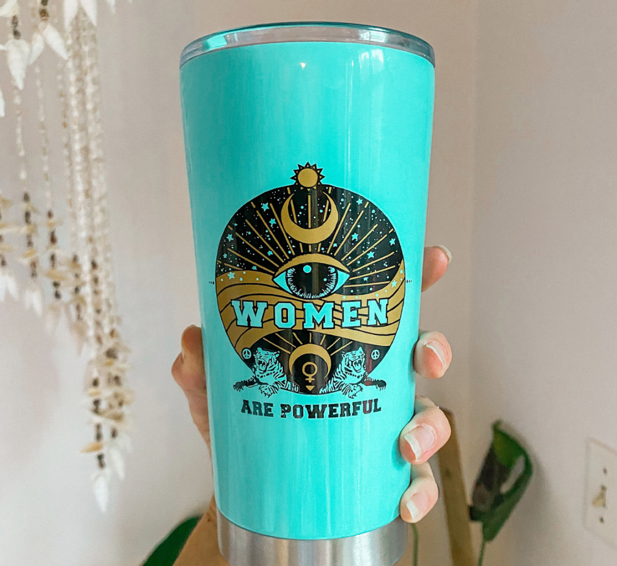 The Mothersun hot & cold reusable tumbler is an eco friendly way to provide beverages on the go; I love this mama’s inspiring black and metallic gold prints on a minty green cup. Use discount code GETGOLDENWITHANGIE to get an 10% off.